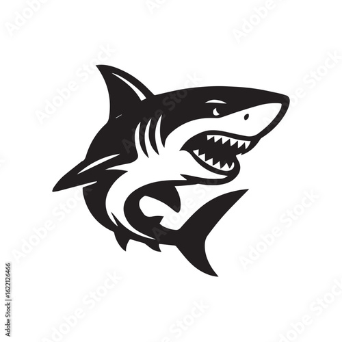© Aura Grapix, Obraz premium Shark black and white vector illustration