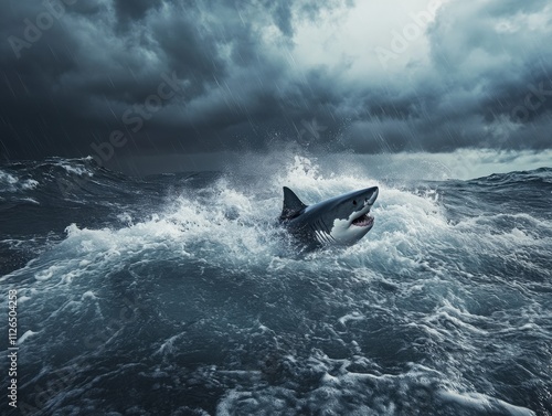 © Aashutosh Pandit, Naklejka premium shark breaching the surface in stormy waters