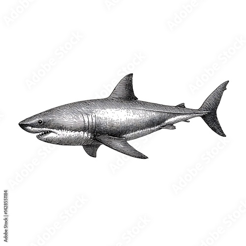 © Abdur rahim, Naklejka premium Shark engraving style illustration on white background