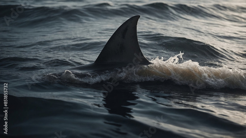 © DAndreev, Fototapeta premium Shark fin close-up in murky water
