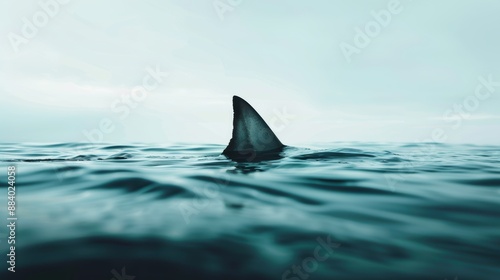 Fototapeta premium Shark fin emerging from the ocean surface, depicting a sense of danger and...