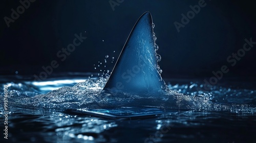 Fototapeta premium Shark Fin Rising: A Cinematic iPhone Concept. AI generated illustration