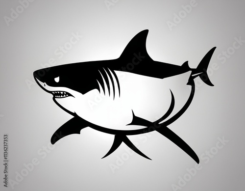 © kim, Obraz premium Shark Head Circle Logo Silhouette Black and White. Ai generated image.