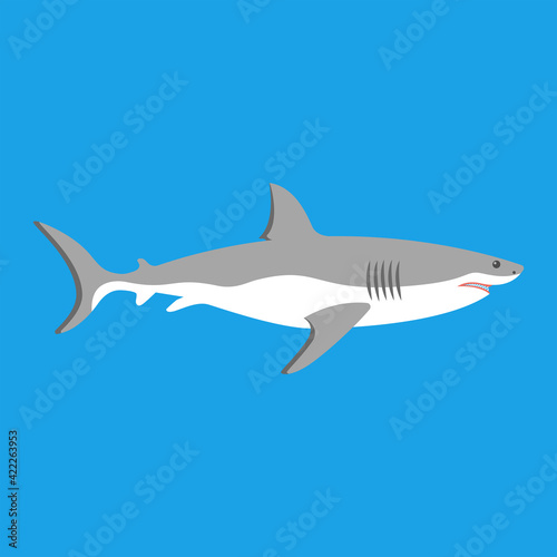 © hvostik16, Obraz premium Shark icon. Big white shark. Sea dangerous predator. Angry animal. Vector illustration flat design. Isolated on white background.