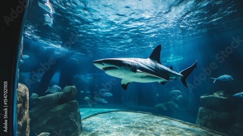 Fototapeta premium Shark in a curved tank with no exit, symbolic of cycles and repeated failure...