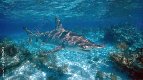 © amin11mario, Fototapeta premium Shark in coral reef underwater