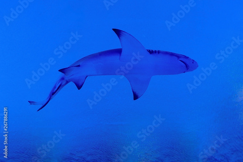 © workingascene, Obraz premium shark in deep blue sea silhouette blue theme
