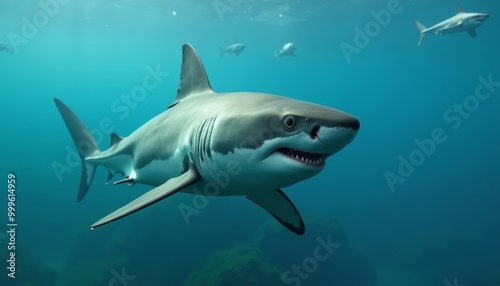 © SwathiFX, Obraz premium Shark in the deep blue sea ready to swim