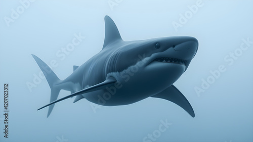 © Tark, Naklejka premium Shark in the sea, dramatic foggy photo. Generative AI