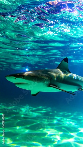 © Arifyoga, Fototapeta premium Shark in vibrant underwater scene