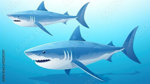 © Dilshad, Fototapeta premium Shark isolated in deep blue sea against a background
