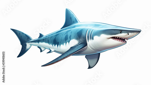 © DIGITALSHAPE, Obraz premium Shark isolated on white background. Created with Generative AI tools