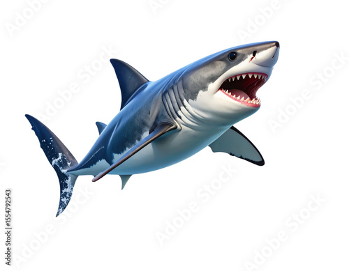 Fototapeta premium Shark Leaping Out of Water with Explosive Splash Dynamic Ocean Predator...