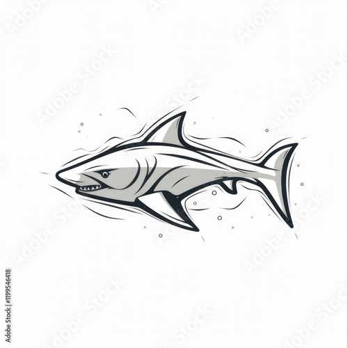© Mykola, Fototapeta premium Shark Line Art - Continuous Line Pet and Animal Farm Wildlife Logotype 1