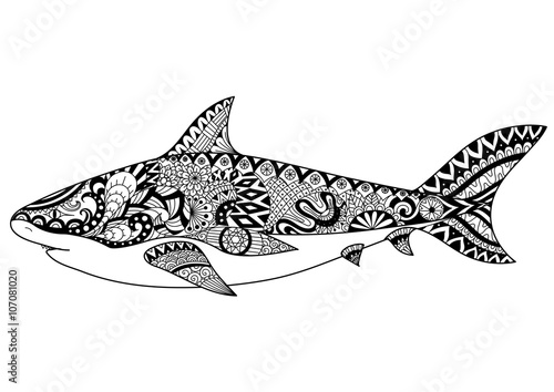 © Somjai King, Fototapeta premium Shark line art design for coloring book for adult, tattoo, t shirt design and other decorations