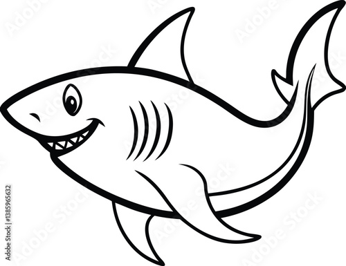 © Mother Of Mahofuj, Fototapeta premium Shark Line art Design with white background