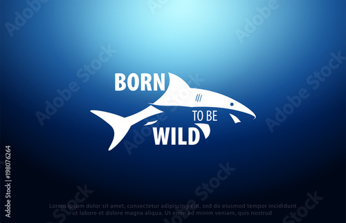 © leo_d, Obraz premium Shark logo with Underwater background with sun rays. Deep Ocean. Color vector illustration