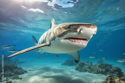 © Kate, Fototapeta premium Shark Marine Animal Swimming In A Clear Blue Ocean Sea