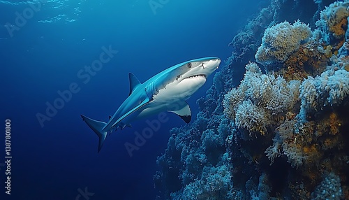 Fototapeta premium Shark near Coral Reef Underwater