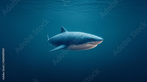 Fototapeta premium Shark powerful body concept, A majestic shark swimming gracefully in deep blue ocean waters.