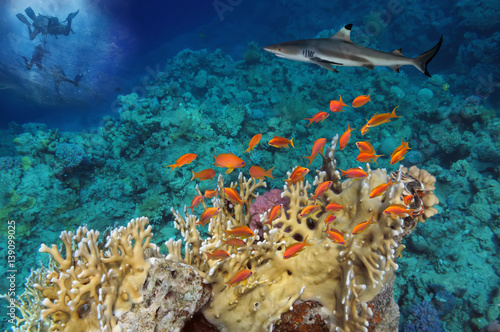 © vlad61_61, Fototapeta premium Shark (Rhincodon typus) with divers