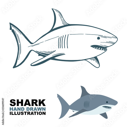 © Goga, Obraz premium Shark. Shark hand drawn vector illustrations set. Shark sketch drawing.