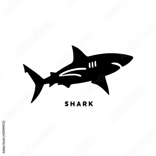 Obraz premium Shark Silhouette: A bold, minimalist silhouette of a shark, rendered in solid...