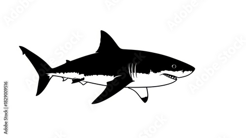 © Soor, Fototapeta premium Shark Silhouette Vector – Black and White Predatory Fish Illustration
