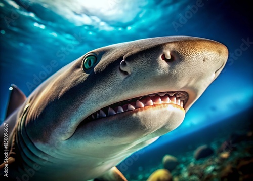 © Wanlop, Naklejka premium Shark Skin Texture Wide Angle Close Up: Macro Photography of Aquatic Animal's Dermis