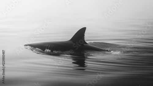 Fototapeta premium Shark swimming in calm waters ocean wildlife serene environment side view