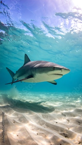 © Tukang, Fototapeta premium Shark swimming in clear shallow water