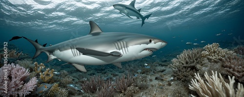 Fototapeta premium Shark swimming in the ocean. Extremely detailed and realistic high resolution...