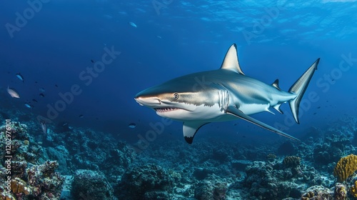 Fototapeta premium Shark swimming over coral reef