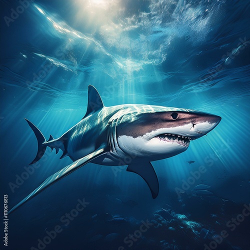 Fototapeta premium shark swimming silently through the depths, with a sense of power