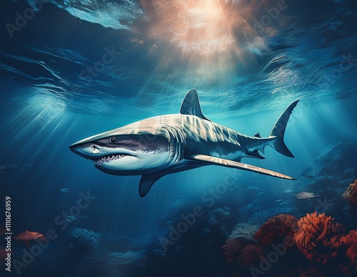 Fototapeta premium shark swimming silently through the depths, with a sense of power