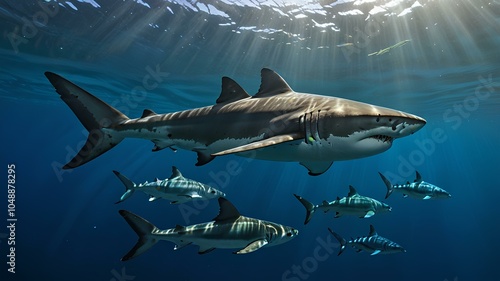 Fototapeta premium shark swimming underwater in clear water for tourism, holiday adventure and...