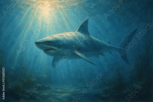 © Ekaterina, Fototapeta premium Shark Swimming Underwater Painting