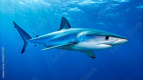 Obraz premium Shark Underwater – Ocean, Fish, Predator, Sea, Marine, Blue, Water, Dangerous, Wildlife, Nature, Animal, Swimming, Aquatic, Wild