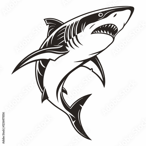 © MdMajidul, Obraz premium Shark vector silhouette black design white background