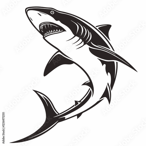 © MdMajidul, Obraz premium Shark vector silhouette black design white background