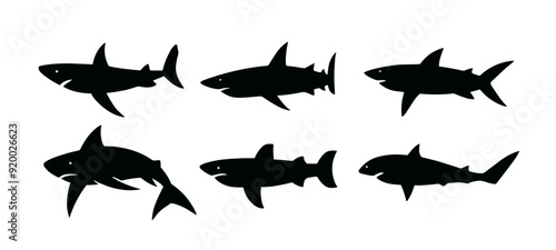 Fototapeta premium Shark vector silhouette isolated underwater icon. Sea shark animal art clip black logo silhouette icon.