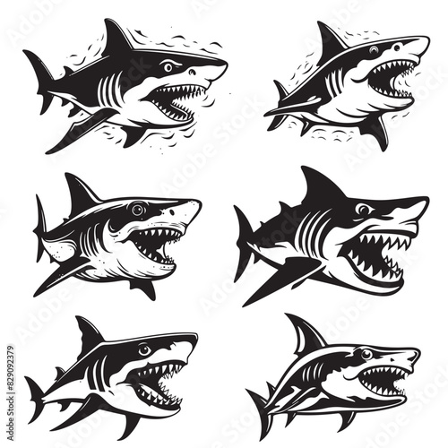 © PapaGray, Naklejka premium Shark Vector Stencil Set
