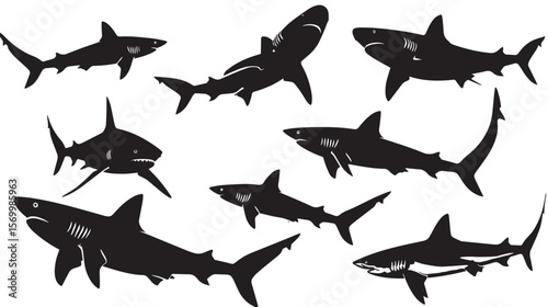© Fouzia, Fototapeta premium Sharks silhouette isolated in White background