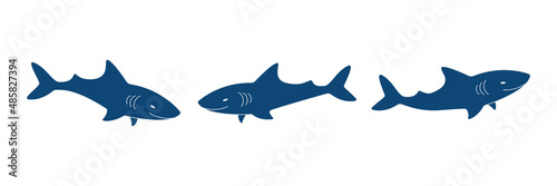 Obraz premium Sharks silhouettes animals collection. Sharks in different poses set. Group...