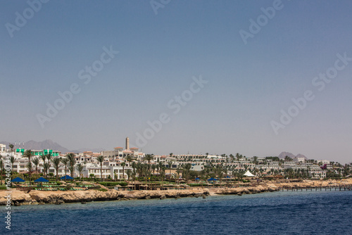 Fototapeta premium Sharm El Sheikh, Egypt - May 16, 2019: Coastal panorama of luxury hotels and...