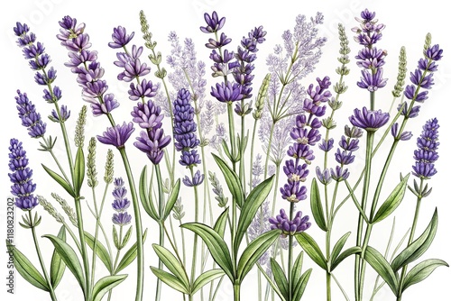 © Adisorn, Naklejka premium Sharp Lavender Floral Sketches: Bright Black & White Botanical Illustrations