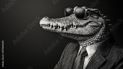 Obraz premium Sharp Looking Crocodile in Suit and Sunglasses