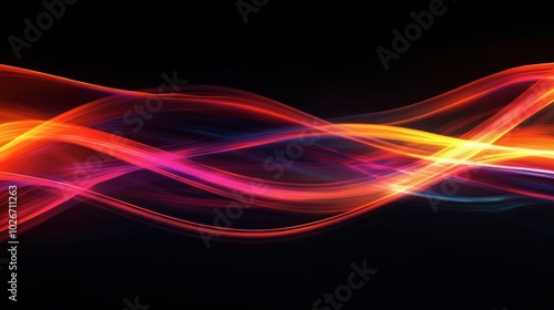 Obraz premium Sharp neon light trails forming intricate patterns on a black background,...