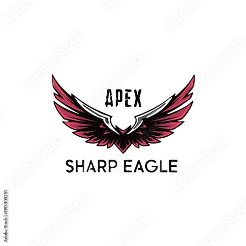 © Stok, Fototapeta premium Sharp Red and Black Eagle with Spreading Wings and "APEX SHARP EAGLE" Text, Precision Gaming Logo on Isolated White Background