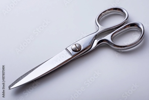 © pavlofox, Obraz premium Sharp scissors placed on a white background
